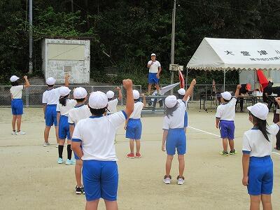 19日の朝の時間と1校時に運動会に向けての最後の全校体育を行いました。秋晴れのもとで、開閉会式、大堂津音頭、応援等の練習を行いました。最後の練習と言うこともあり、子ども達は、とても真剣に集中して取り組んでいました。特に応援は、団のまとまりが強くなり、元気いっぱいでした。今のところ、運動会まで天気の心配はなさそうです。23日に無事に運動会が開催されることを大堂津小全体で願いたいと思います。
