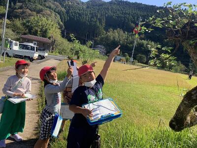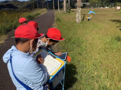はまぼう公園周辺は、自然が豊かで、子どもたちは景色が緑色から黄色の変化している等、夏と秋の違いについて気づくことができたようでした。
