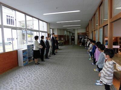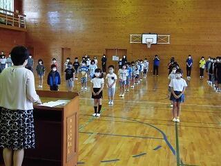 離任式は、放送で転出される先生方のお話が流れました。子ども達は、しっかり聞いていました。