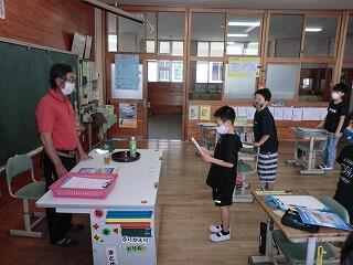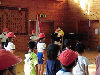 臨時休校中の1回目の登校日でした。放送での全校朝会でした。
