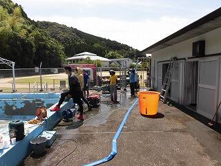 浜っ子活動班に分かれて、運動場の石拾いと草取りを行いました。