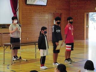 「旅する読書50冊達成者」の紹介や「宮崎県学童陸上競技会」での入賞者等の表彰を行いました。