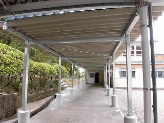 本日、新しい渡り廊下が完成し、雨が降っても濡れることなく通ることができるようになりました。