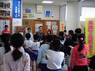 児童代表が、大堂津小は「あいさつ・えがお・けじめ・日本一」をめざしてがんばっています。と元気に歓迎しました。