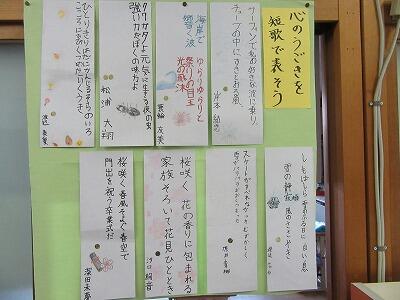 5年生は、「心の動きを短歌で表そう」というテーマで、短歌作りに取り組みました。子ども達それぞれの作品が、廊下に掲示してあります。その中で、岸本結恋さんの作品が、油津キャナルマルシェ俳句・短歌作品展の小中学校短歌の部で、見事に一席となりました。