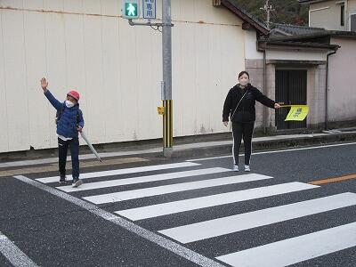 年明けより、保護者の方々が登校立番指導を行ってくださっています。寒い中、朝早くから旗を持って、道路や横断歩道等で、児童に歩行指導や声かけ、見守り等を行ってくださっています。