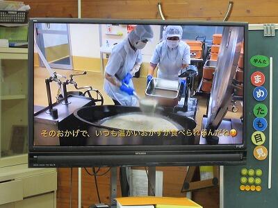 それに伴い25日の朝の時間に給食感謝集会を実施しました。本日は各教室で委員会の先生と子ども達が作成した動画を視聴しながらの実施でした。委員会の子ども達の進行のもと、最初に細田調理場の給食調理員さん達の給食作りの様子を視聴し、その後、「いのちをいただく」という絵本の読み聞かせを視聴しました。「いのちをいただく」という絵本は、食べることは生きること、命をとおして食べ物の大切さを描いた実話絵本で子ども達はとても真剣に読み聞かせを視聴していました。