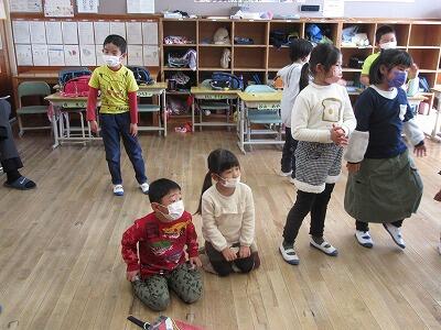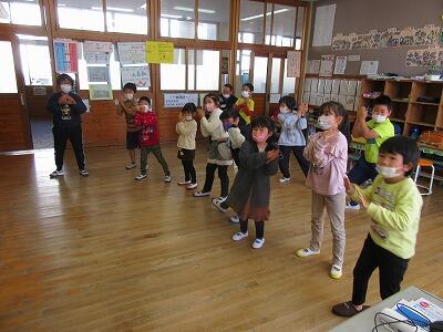 説明会を実施している間、2年生児童と新入児は生活科の交流学習を行いました。少し緊張気味の新入児を2年生が優しくエスコートし、一緒にダンスを踊る等して楽しく過ごしました。