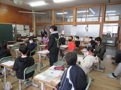 若さ溢れるとてもさわやかな発表で学校も元気をいただきました。これから実習生の皆さんは実習を終え、本格的に漁師として出港されるということでした。実習生の皆さんのご健康と航海の安全を大堂津小学校全員で心より願いたいと思います。