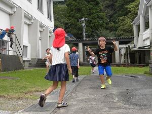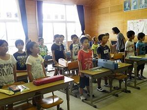 今日はALTのアンジェリーナ先生が、大堂津小に来られる最後の日でした。そこで、お別れ会を行いました。まずは全校生徒とアンジェリーナ先生を交えて「じゃんけん列車」を行いました。また、学校を出られるときは、みんなでお見送りをしました。