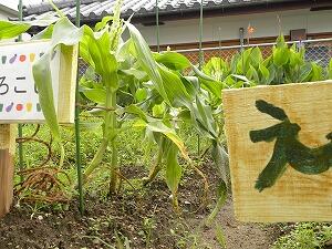 雨上がりのお昼休みです。午後のクラブに備えて水着を干している子。中庭を元気に走り回る子。成長してきた学級園のとうもろこしやえだまめ。