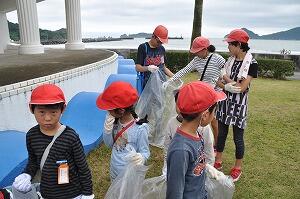 今日の2~3時間目には、全学年で「クリーン活動」を実施しました。環境教育の一環として、地域の大堂津浜の清掃を行うものです。浜っ子班で活動しました。3・4年生は、海上保安部の方々と一緒に「漂着ゴミ調査」を併せて行いました。