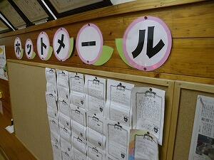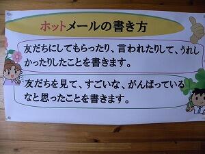 生活委員会を中心に「ホットメール」という活動を行っています。これは、友だちのがんばっているところやよいところなどに、ありがとうのメッセージをホットメールポストに入れ、給食時間の放送でメッセージを読んだり、校内に掲示したりしています!