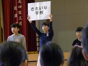 その後、環境美化委員会は、全校児童へのお願いを伝えました。