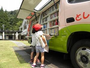 市の図書館から、移動図書館「たいよう号」が、約2週間の周期で大堂津小学校へやってきて、本の貸出をしていただいております。図書館のスタッフの方々から、おすすめの本を紹介していただきました!