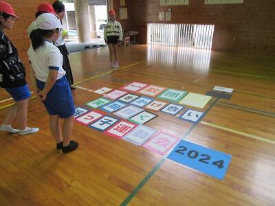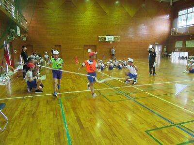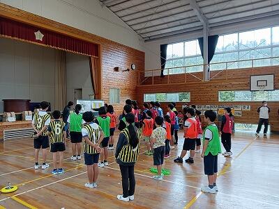 中学生をリーダーに、異学年で6グループに分かれて、勝敗を競いました。中学生が優しく教えてくれたり、他校の子ども達と触れ合ったりと、とても楽しめたようでした。