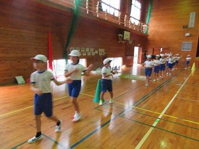 22日の朝の時間と1・2校時に運動会の予行練習を行いました。この日は、土砂降りの雨で、やむを得ず体育館の実施となりました。体育館での実施でしたので、安全面に配慮し、順位を競うのではなく、全体の流れの確認、競技の位置の確認、係の仕事等の確認等に重点を置きました。子ども達は、体育主任の久保田先生の指揮の下でしっかりと動くことができていました。今後も不安定な天気が続きそうですが、予定通りに実施できることを祈るのみです。