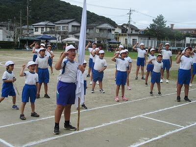 27日に、「平成6年度はまっこ運動会」を実施しました。当日は、雨が予想されましたので開始時刻を10時に遅らせての実施でした。開会式は、ほぼ予定通り実施することができました。児童代表の言葉では、1年生の松浦加歩さんと松田奈優さんが上手に言葉を述べることができました。エール交換では、赤団団長の大内健志さんと白団団長の守山天馬さんを中心に力強いエール交換が実施できました。