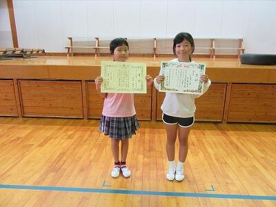 その後、文集「ともだち」と読書感想画コンクール、旅する読書において、頑張った子ども達の紹介を行い、代表で、5年生の蓑輪友美さんと3年生の落合希光さんを表彰しました。