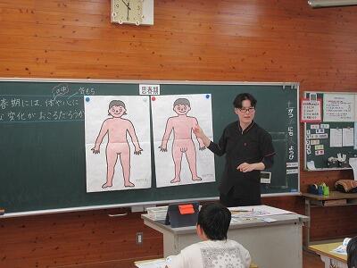 5日に本校の池田裕太養護教諭が3年生に性教育の授業を学級担任の先生とティームティーチングで行いました。「思春期には身体の中や心にどんな変化が起こるだろうか」というテーマで、これから迎える思春期についての授業でした。身体や心の変化について、池田先生が、イラスト等を使って具体的に説明してくださいました。変化が起こる時期には個人差があること等、子ども達はしっかりと学べたようでした。