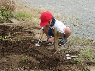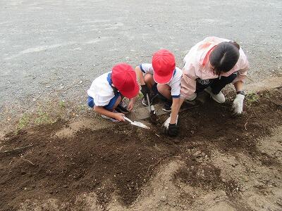 8日の2校時に、1年生は、生活科園に植えたサツマイモを収穫しました。土をスコップで掘っていくと大きなサツマイモが現れ、それを子ども達は折らないように上手に収穫していました。大きなサツマイモがたくさん収穫できて、子ども達は大喜びでした。