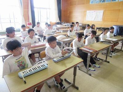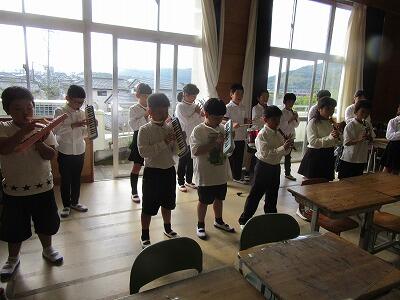 本日13日に南郷ハートフルセンターで、日南市小中学校音楽大会が開催されます。本校からは代表で、3・4年生が参加します。3・4年生は、担任の河野先生と西山先生、養護教諭の池田先生といっしょに、2学期に入って、授業や昼休み等、ずっと練習を頑張ってきました。いよいよ今日が本番です。「沖永良部の子もり歌」、「ソーラン節」、「サンバ・ブラジル」の3曲を披露します。3校時に、音楽室で最後の練習を行いました。