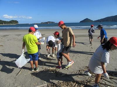 19日の5・6校時に、細田地区小中合同ボランティアで大堂津浜のゴミ拾いを実施しました。穏やかな晴天の下で、中学生と青少協の方々と一緒に行いました。グループに分かれてのゴミ拾いでしたが、中学生の生徒の皆さんが、優しくリードしてくれて、子ども達は熱心に取り組みました。それぞれのグループが、たくさんのゴミを集め、海岸のゴミの多さに改めて気付かされたことと思います。