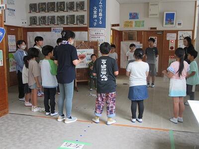 6月12日の2・3校時に大堂津小学校で細田地区の集合学習を実施しました。当日は、細田小と大窪小の子ども達と先生方をお招きして楽しく交流学習を行いました。体育、学級活動、生活科等の授業が実施されました。いつもとは違う先生方や子ども達との触れ合いに子ども達はとてもうれしそうでした。他校の先生方や子ども達と触れ合いながら学習することは、いつもと違った多様な価値観に触れる意味でもとても意義深いと思います。是非、今日の出会いを大切にしてほしいと思います。