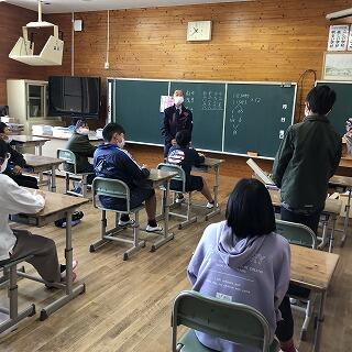 県土木事務所の皆様が講師として、土砂災害が起こるメカニズムや、防止のための仕組みについてイラストや動画で説明してくださいました。また、砂防ダムの模型を使った実験によって、私たちの生命や生活を守る工夫がされていることも知りました。