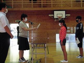 「旅する読書50冊達成者」の紹介や「宮崎県学童陸上競技会」での入賞者等の表彰を行いました。