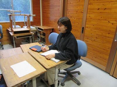 30日に先日実施された「新春子どもの声を聴く会」を体調不良のために欠席した岡野彩希さんの発表を聴くために、日南市教育委員会の都甲教育長、長本生涯学習課長等3名が大堂津小学校に来校されました。