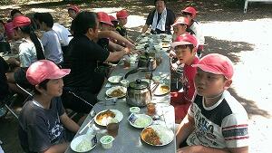 今からお昼です。みんな元気です。昼からは、追跡ハイキングですが、天気が良すぎて困っています。