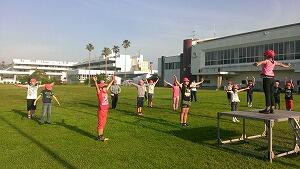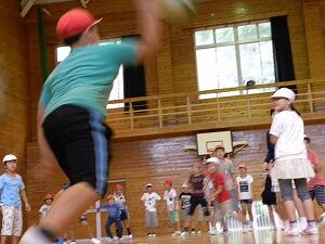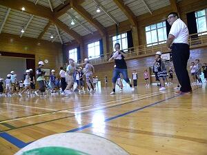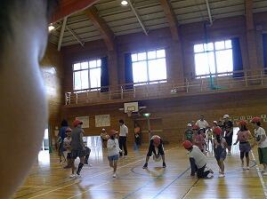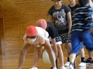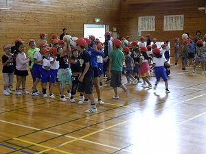 追跡ハイキングが少し早く終わりましたので、指導員の先生より、ミニゲームを体育館でしています。