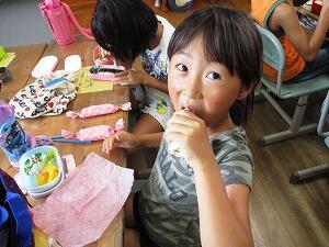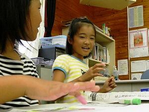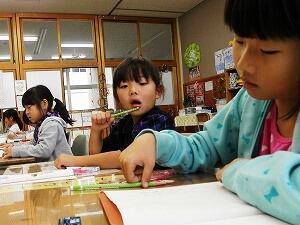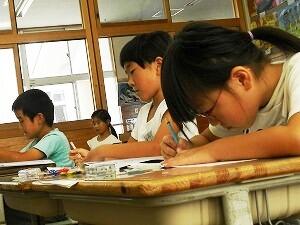 雨が降ったかと思えば、太陽が顔を出しと、蒸し暑い6時間目。3年生は、読書感想画作成。4年生は、算数科の問題に集中。6年生は、家庭科で製作するのナップサック選び。汗をたらたら流しながらも、がんばっていました!