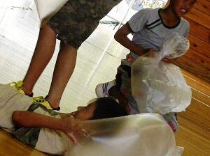 4年生の理科では、「空気や水をとじこめると」という単元を学習しています。今日は、空気を閉じ込めた袋を使って、空気の存在や性質を体感しました!