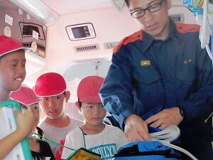 4年生の社会科では、「なくそうこわい火事」という単元の学習をしています。本日は、日南市の消防署へ見学に行き、施設や設備の工夫、働く人々の仕事の様子を見つけていました!