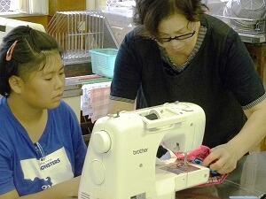 6年生の家庭科では、「楽しくソーイング」という単元で、ナップサック製作をしています。本日は、地域ボランティアの方々と一緒に、ミシンの使い方などを学習しました!