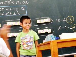 1年生の算数科の授業です。絵日記から適切に情報を選択して、問題を解いていました!