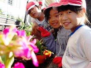 学級や浜っ子班(縦割り班)の花壇をきれいにする「グリーンタイム」でした。今日は、苗の植え付けをしました!!