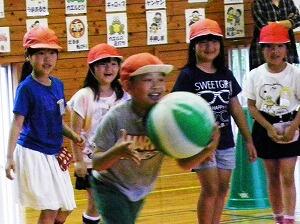 月曜日の朝は「えがおタイム」の時間です。本日は、6年生が企画した「浜っ子班対抗ドッジボール大会」です!!