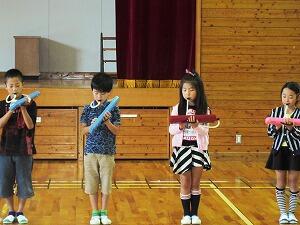 昨日の児童集会は、4年生の発表でした。輪唱でおなじみの「カエルの歌」を、けん盤ハーモニカで合奏しながら、大きなカエルや小さなカエルのセリフを交え、おもしろいカエルの世界を表していました!