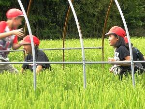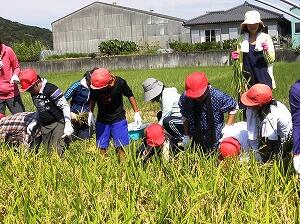 雨の合間を見つけ、5年生が、学校田の観察に出かけました。草取りはもちろん、ピンク色したジャンボタニシの卵を取り除くなど、色々な発見がありました!