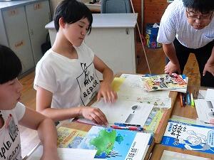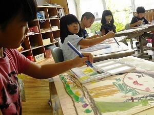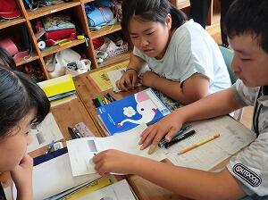 2年生の図画工作科では、読書感想画をかいています。心に残った場面を想像しながら、それぞれ絵に表していました。