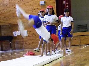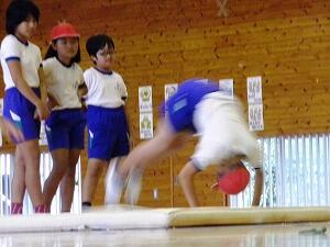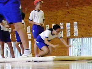 5・6年生の体育科では、本日の水泳指導が中止になったため、マット運動に取り組んでいます。