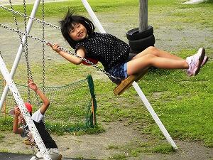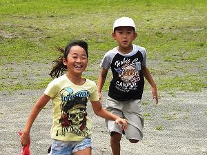 気持ちよい青空の下、昼休みには元気に運動場で遊ぶ子どもたちです。学年を超えて、おにごっこをする子どもたちもいました!!