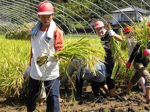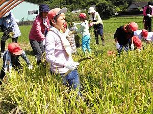 真夏の太陽がぎらぎらとまぶしい中、今日の登校日は「稲刈り」を行いました!!