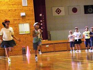 雨が屋根に激しく叩きつけられる中、今日の昼休みは、全校のみんなで遊ぶ日でした。全校のみんなでリレーです! 雨の音にも負けないくらいの声援がとんでいました!!