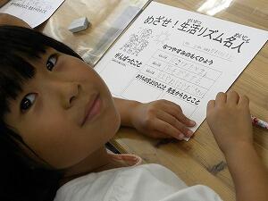 夏休み中に全学年、「めざせ!生活リズム名人」と題して、早寝早起き朝ごはん・運動・読書・手伝い・メディアコントロールといった「基本的な生活習慣」をチェックする取組を行います。1年生は本日、食事・運動・睡眠の夏休みの目標を立てていました!!