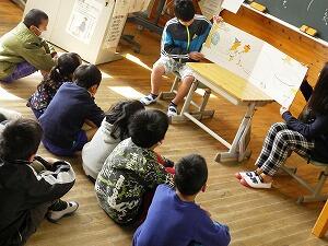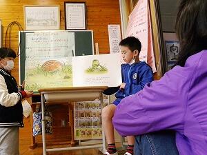 本日は、児童読み聞かせを業間の時間に行いました。5・6年生が、下学年へ読み聞かせをします。今日までに5・6年生は、読み聞かせの本を選んだり、読む練習をしたりしてきました。聞いている子どもたちは、食い入るように本の世界に入っていました。