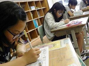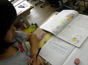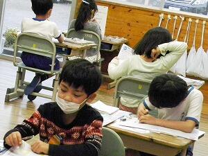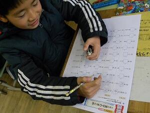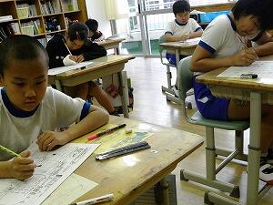 2年生は、「なわとび名人」を目指して、必死に短なわの練習をしています。3年生は、3年生で習った漢字のまとめのテストに集中しています。